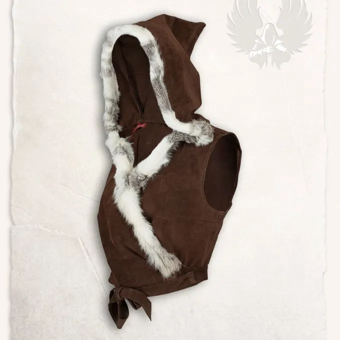 Denne unikke top er lavet af højkvalitets blødt læder og kaninpels. En smuk top til fantasy festivaler og Cosplay! Toppen har en hætte trimmet med pels, og det har snørebånd at fastgøre det omkring dine hofter. Du kan kombinere denne top med tøj efter eget valg, så det er egnet til hver sæson. Den kaninpels kommer fra økologiske avlere i Tyskland, er der ikke skind fra fabrikken landbrug eller jagt blevet brugt.