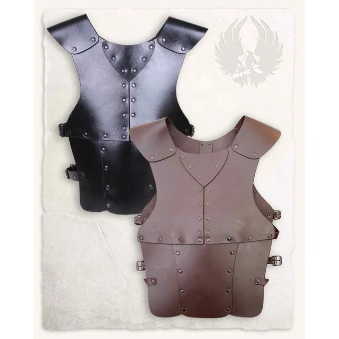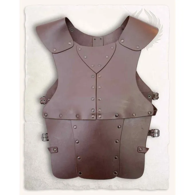 Dette produkt er velegnet til genindførelse, cosplay og larp. Produktet er lavet af split læder. Denne rustning er specielt lavet til vores unge helte. Ved hjælp af de forskellige bæltespænder kan rustningen tilpasses til bærerens bærer.