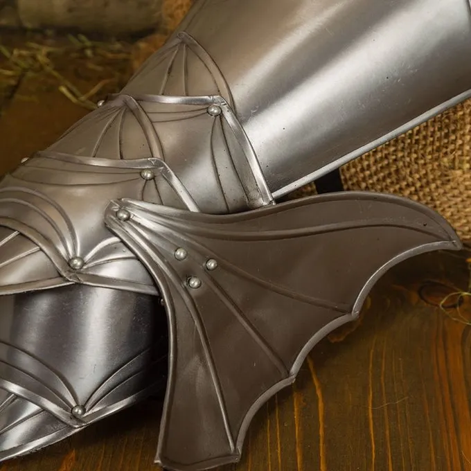 Denne fantasy-rustning er udviklet til at kunne bæres komfortabelt i LARP-kampe. Rustningen består af kurass, kløften, pauldrons, vambraces, tassets og benrustning. Seledelene består af flere stålplader, der overlapper hinanden. Vi anbefaler at bære en gambeson under denne sele for ekstra komfort. Denne sele kan tilpasses størrelsen med læderstropper.