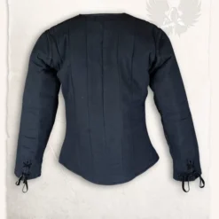Denne Gambeson findes er lavet efter 15. århundrede originaler. Denne model Gambeson findes ofte blev slidt under middelalderen, sene middelalder og renæssance plade rustning. Det 15. århundrede aristokrati var meget moderne og denne Gambeson findes er lavet i stil med fashionable dubletter. Læderremme og aiglets kan fastgøres til Gambeson findes, hvortil rustning kan fastgøres. Den Gambeson findes kan være lukket ved fronten med snørebånd. Uden på dette Gambeson findes er lavet af 50% ru vævet hør og 50% bomuld. Indersiden er lavet af åndbart bomuld og uld filt. Den linned mix stof gør Gambeson findes udseende meget historisk autentisk til middelalderen og renæssancen kostumer, reenactment og LARP.