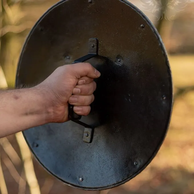 Denne buckler er fremstillet af 2 mm tyk stål. Kanterne er afrundede, hvilket gør det ekstra sikkert at bruge. Disse Skjolde blev brugt omkring det 15. og 16. århundrede. De var meget populære og blev brugt både til forsvar og som en offensiv våben i en-til-en kamp. Den er lavet af 2 mm tykt stål så perfekt til reenactment og historisk europæisk kampkunst.