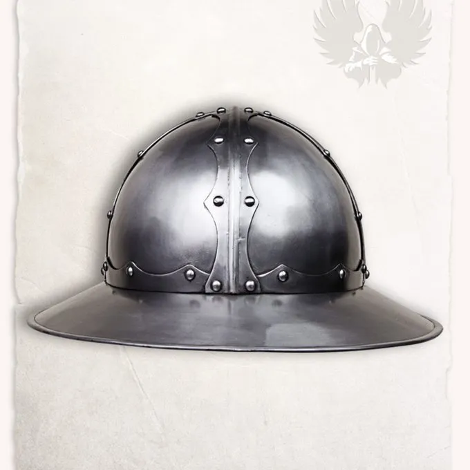 Denne middelalderlige kedelhjelm er baseret på billeder i Maciejowski bibel. Medieval hjelme som denne var ideel, fordi randen beskyttede ansigtet og hovedet mod indkommende pile og projektiler. Kedelhjelm blev båret af alle klasser af middelalderens samfund.