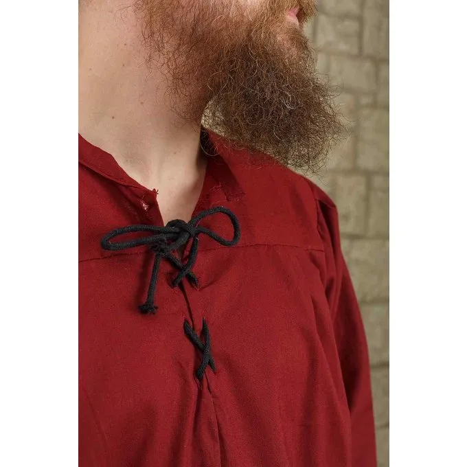 Den middelalderlige skjorte Simon er lavet af let bomuld og derfor perfekt til at holde kølig på en varm dag. Skjorten har en lille stand-up krave med en slips foran og ærmer, der kan justeres til bæreren ved at binde 3 point på underarmen. Skjorten er et perfekt grundlag for et middelalderligt kostume på for eksempel et LARP -møde eller middelalderfestival.