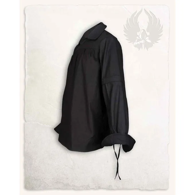Den Tilly -skjorte er lavet i henhold til historiske mønstre. Det brede, overdådige klip af ærmerne kan justeres på to punkter med snørebånd: ved albuen og håndleddet. Bind dem, men du vil have en sommertrøje til varme temperaturer. Den lette bomuld er holdbar, blød til berøring og transporterer fugtigheden væk fra kroppen, hvilket gør den velegnet til at bære som en undertrøje. Den brede krave og quillings på manchetterne tillader den at blive brugt til en lang række karakterer – hvad enten det er en simpel bonde, pirat, købmand, useriøs eller adelsmand: denne skjorte er et perfekt grundlag for mange kostumer. Perfekt til en LARP -samling eller middelalderlig festival.