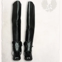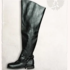 Disse Mytholon-støvler af høj kvalitet er et must for genopførelse, LARP og Cosplay af musketerer og andre figurer fra det 17. og 18. århundrede. For eksempel er de også fremragende historiske ridestøvler, og du kan bære dem med et kostume efter eget valg. Støvlerne er høje og kommer til knæet. Benene holdes varme under lange begivenheder. Læderet er af høj kvalitet, og hvis du regelmæssigt behandler støvlerne med bivoks eller Ballistol, er de vandtætte. Støvlerne har en rem ved anklen for at gøre den strammere. Den forreste del af bagagerummet er helt i stil fra det 17. århundrede. Så det er holdbare støvler, der holder længe og kan kombineres med mange forskellige kostumer.