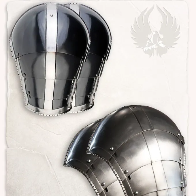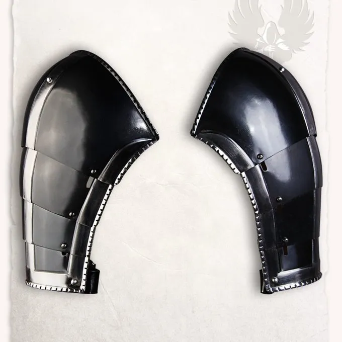 Disse smukke pauldrons er lavet i samme stil som det 16. 17. århundrede. Pauldrons som disse blev båret under den store belejring af Malta i 1565, de Firsårskrigen, og i Tudor England. Disse pauldrons kan kombineres med andre rustning dele.