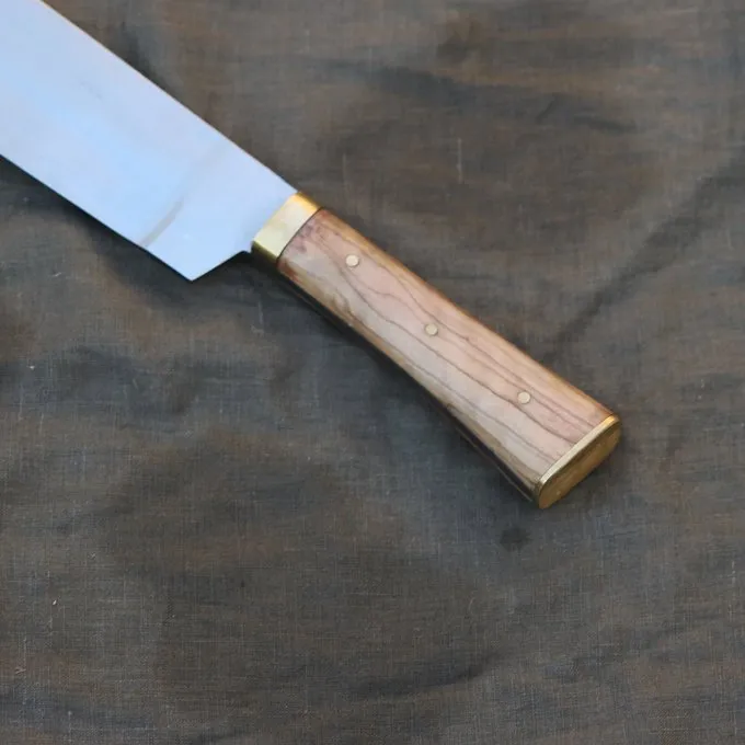 Materiale: kulstofstål, træ, messing / Længde: 63 cm / Maks. bladbredde: 7 cm / Baseret på en historisk original