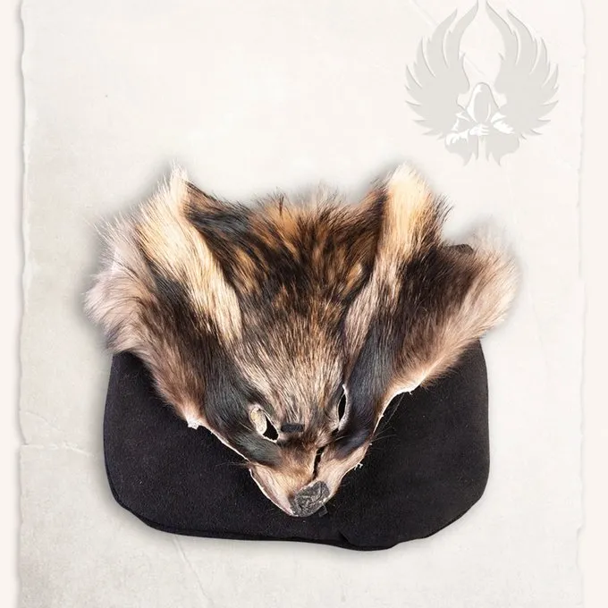 En unik håndlavet taske af Mytholon. Denne høje kvalitet taske er håndlavet af naturlige materialer: læder og vaskebjørn pels. Pelsen kommer fra canadiske og østeuropæiske vilde vaskebjørne skudt til skadedyrsbekæmpelse. En stor taske til LARP, reenactment og Cosplay af vikinger, sakserne, middelalderlig, vilde vesten og andre historiske perioder. Tasken har en bæltestrop, så du kan hænge det på dit bælte. Det har en træ-knap til lukning.