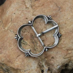 Denne luksuriøse spænde er en kopi af adskillige 15. 16. århundrede originaler. Middelklassen og aristokrati bruges til at bære ranges som denne under renæssancen. Den spænde er håndgjort af messing eller forsølvet messing og måler 5,5 x 4 cm. Det er egnet til remme med en bredde på op til 3 cm