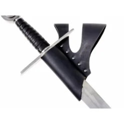 Dette sværd Holderen er lavet af split læder. Den er velegnet til nyopførelse sværd, økser og smalle larp sværd.