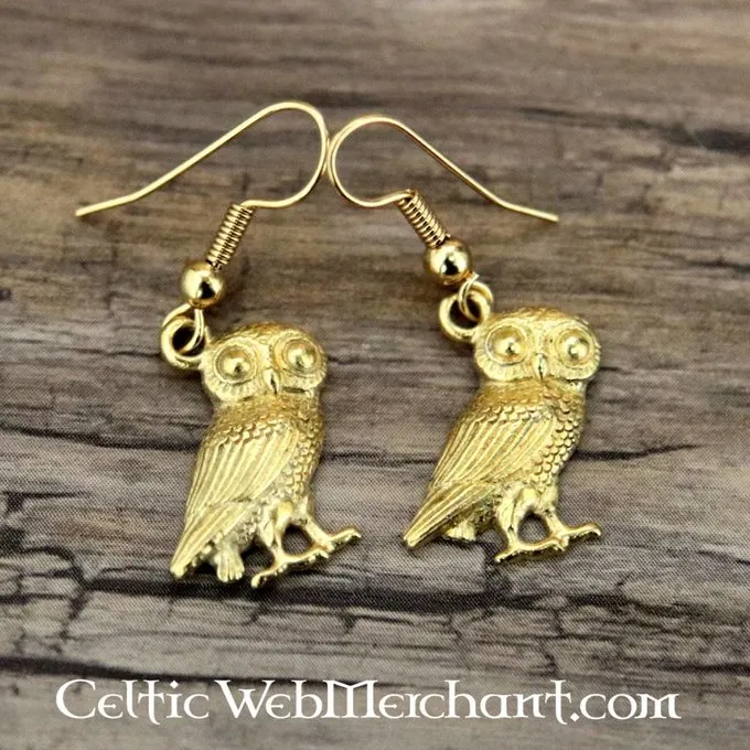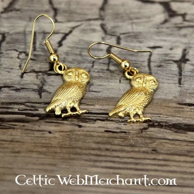 Uglen var symbolet på Minerva, den romerske gudinde for visdom. Disse smigrende øreringe er lavet af guldbelagt tin og har guldbelagte, allergivenlige øre ledninger.