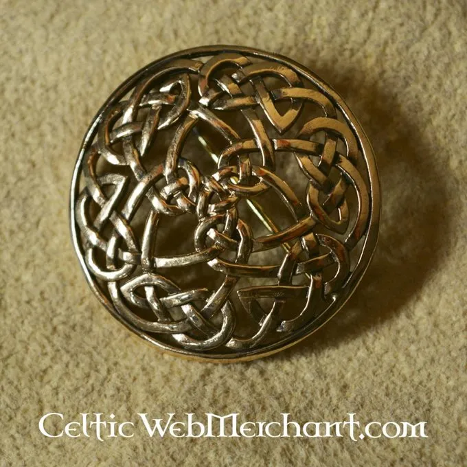 En broche i Old Irish stil med knude motiver. Dette stilfulde broche er helt håndgjort af bronze og har en diameter på ca.. 3,9 cm