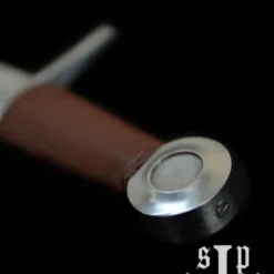 Denne høje kvalitet Viking seax er inspireret af historiske originaler. Den har et smukt træ greb med en knogle ring i toppen. Knoglen ringen viser en smuk knude motiv i Urnes stil. Toppen har også en ring tfor fastgørelse snøre. Grebet har også et par tynd messing og sorte ringe, som kontrast smukt med de lyse farver i træ og ben. Vingen fremstilles fra Damaskus stål. Dette stål er opkaldt efter hovedstaden i Syrien, Damaskus, hvor stål blev opfundet. Damaskus stål er en type stål sammensat af to eller flere forskellige ståltyper. En højere kulstofstål og en mildere stål gentagne gange smedet og foldes. Dette skaber et særligt mønster i bladet. I middelalderen mente man, at dette stål havde magiske egenskaber. Moderne fantasy serien også bruge Damaskus stål til at skildre magiske ståltyper, såsom Valyrian stål i Game of Thrones. Damascus stål kombinerer de gode egenskaber af blødere og hårdere stål, hvilket resulterer i højere hårdhed, styrke, holdbarhed og fleksibilitet. Læderet skeden er rigt dekoreret med messingbeslag, der viser små geometriske motiver. Det har tre bælte løkker på et bælte skillevæg, som sikrer, at alle tre sløjfer kan hænges på kappen på den bedst mulige måde. Dette giver dig mulighed for at placere seax meget godt. Den seax er skarp og egnet til praktisk anvendelse, såsom skæring træ, læder og andre materialer.