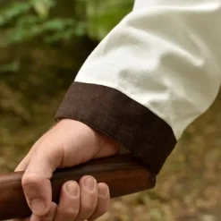Udskæringen er åben og således kan bæres eller lukket med en fibula. Siderne af tunika have en split, så tunika er behageligt når kampene og løb. Våbenfrakken falder omtrent til knæet.