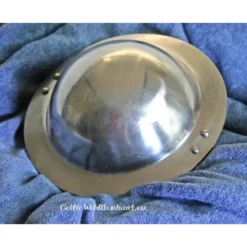 Denne bukkel er fremstillet af 2 mm tyk stål. Den har en diameter på 16,5 cm og vejer 0,55 kg. Grebet er pakket rundt med læder