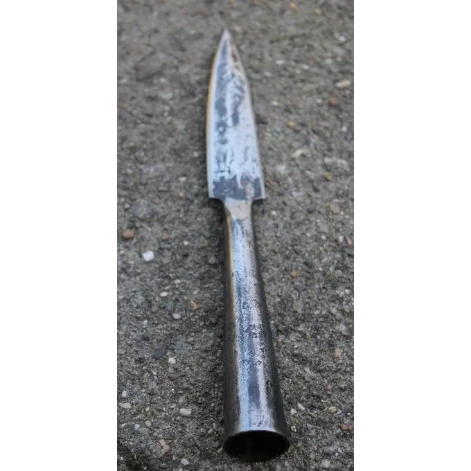Dette element er hånd smedet af ét stykke kulstofstål. Det er Skarp, så det ikke er kæmpe klar. Det er upoleret, som et resultat af, hvor hammer beats er klart synlige.