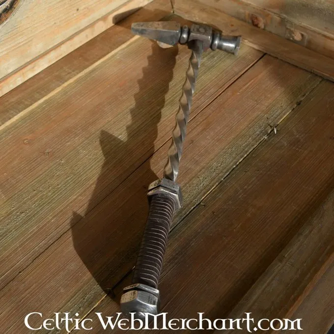 Denne hammer er hånd snoet af stål og har en snoet håndtag. Grebet er pakket rundt med mørkebrun læder. Den hammerhaj er dobbelt naglet til sikkerheden. Den har en længde på 45 cm, en bredde på 15 cm og vejer ca.. 1 kg.