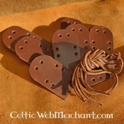 For at fastgøre din rustning eller kædemail sikkert, kan du fastgøre læder snørebånd til din gambeson og fastgøre disse til din rustning / kædemail. Rustningen forbliver således på plads under en kamp.