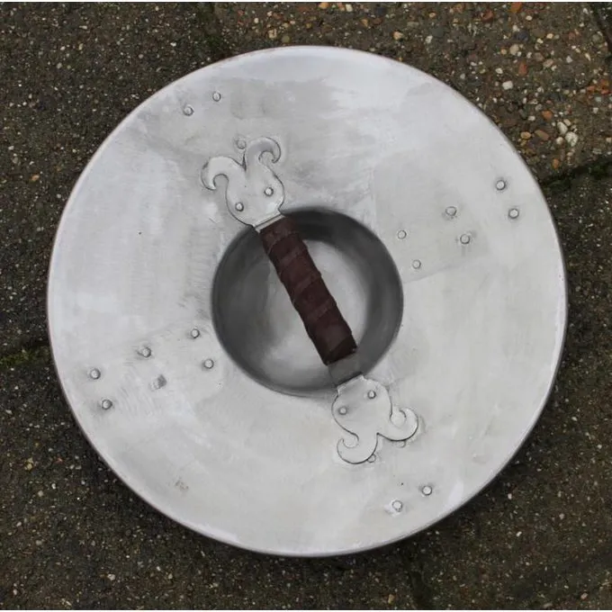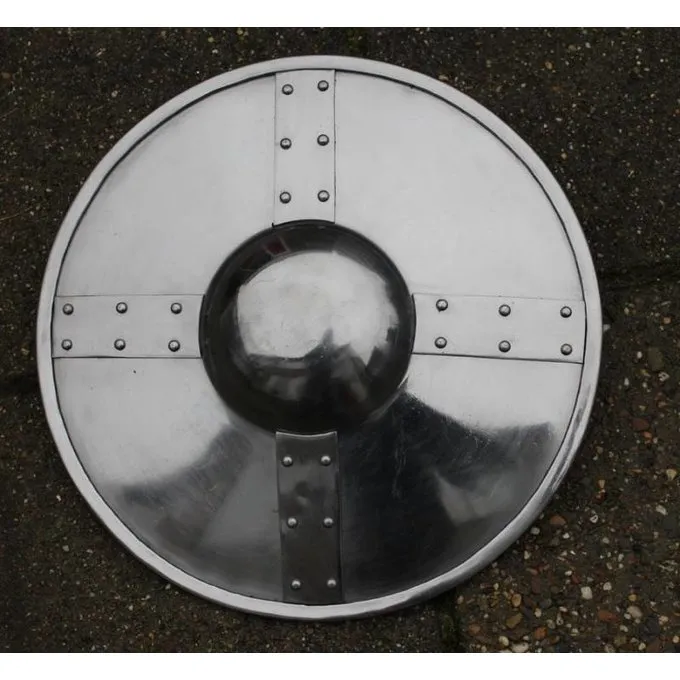 Denne runde bukkel styrkes med ekstra stålplader. Bukkel som dette blev primært brugt i renæssancen, selvom den type var meget ældre. Dette våben er perfekt kombineret med en én-hånds sværd eller en bue.