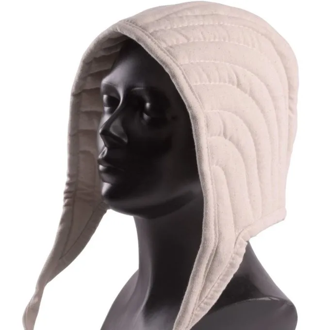 Denne tilkobling hætte er perfekt til at bære under hjelme og mail Coifs at øge komforten. Det er lavet af 100% tyk lærred bomuld med polyurethan påfyldning. Det kan bindes under hagen med lærred ender.