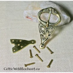 Dette spænde er lavet efter originaler fra vikingetiden. Den leveres med huller, seks negle og en plade. Det kan nemt fastgøres til bæltet med en læder perforator og neglesakse. Den spænde er lavet af messing og er velegnet til et bælte