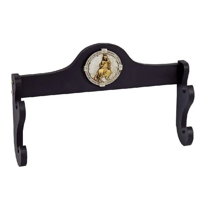Denne væg skærm er velegnet til to katanas, iaitos eller bokkens. Det kan nemt fastgøres til væggen og er lavet af sort syltede træ. Det er 45 cm bred og 28 cm lang.