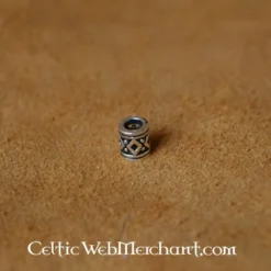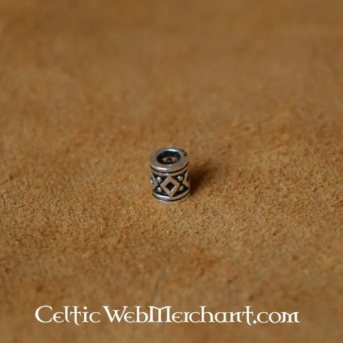 Denne lille sølv perle kan bruges til skæg og hår. Denne sugetablet mønster var meget populær blandt kelterne og vikinger. Den måler ca. 5 x 4 x 4 mm, er fremstillet af sterlingsølv og vejer ca.. 3 gram
