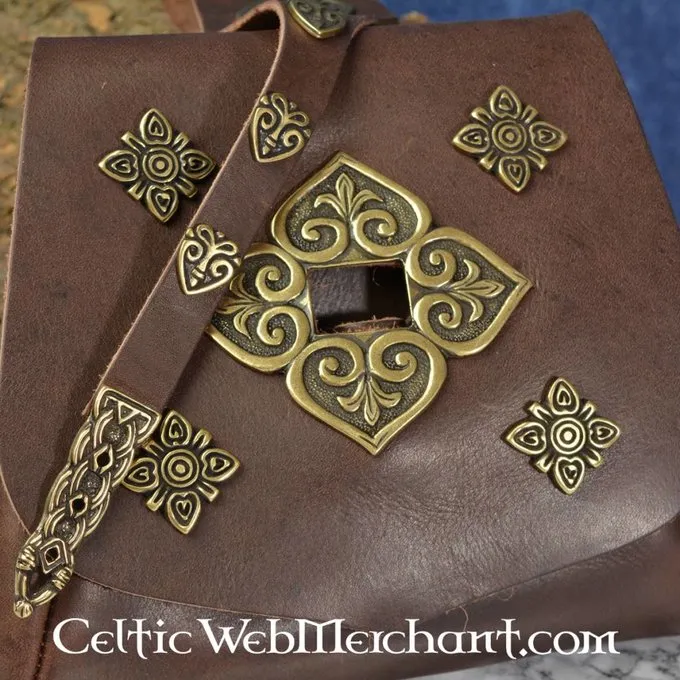 Denne taske er baseret på et originalt fundet i Birka fra 9.-10. århundrede. Beslaget i midten er baseret på en original fra Ås, men lignende fittings blev også fundet i Birka. Tasken er lavet af koskind og fittings er lavet af messing. Det er 18 x 23 cm store