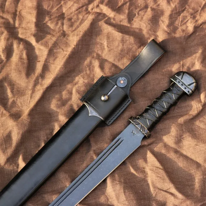 Denne seax er stor som en arbejdskniv eller kampkniv, et solidt våben med god balance. Dette er en klassisk kopi af en vikingesæ. Seaxen var vikingenes yndlingsvåben og gik altid sammen, for det er praktisk og godt at kæmpe med. Som originalerne har denne seax en krumning i klingen. Dette gør seax til et perfekt våben til at hugge og skære. Denne smukke patinerede seax har en autentisk pommel og et greb med traditionel læderindpakning. Det leveres inklusive en scabbard og ægthedsattest.