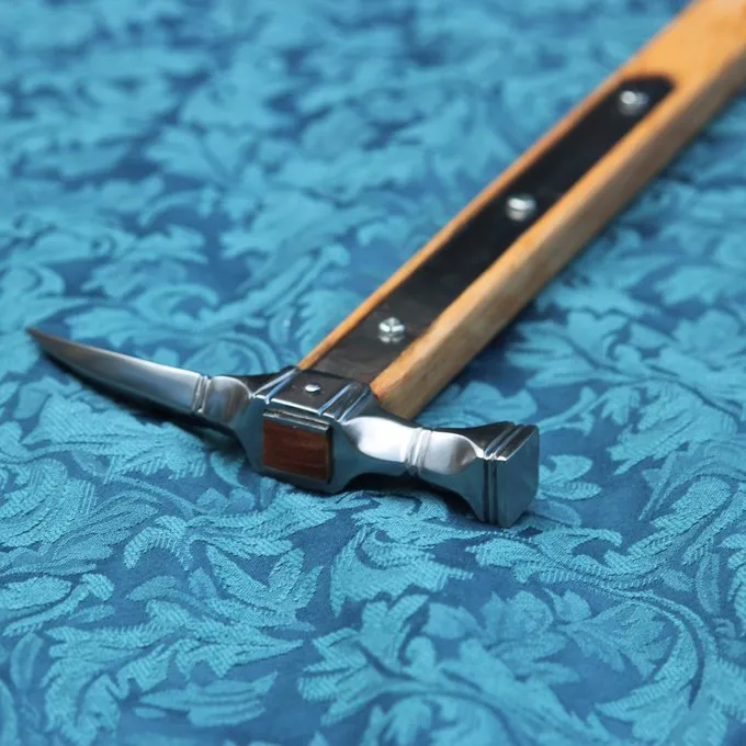 Materiale: 1065 kulstofstål, læder, træ / Tip: mellem semi-skarpe og stumpe. Let at sløve til reenactment brug / Længde: 63,2 cm / Længde hammerhaj: 16 cm / Greb længde: 23,3 cm / Balancepunkt: 21 cm under hammerhaj / Vægt: 742 g / Baseret på en historisk